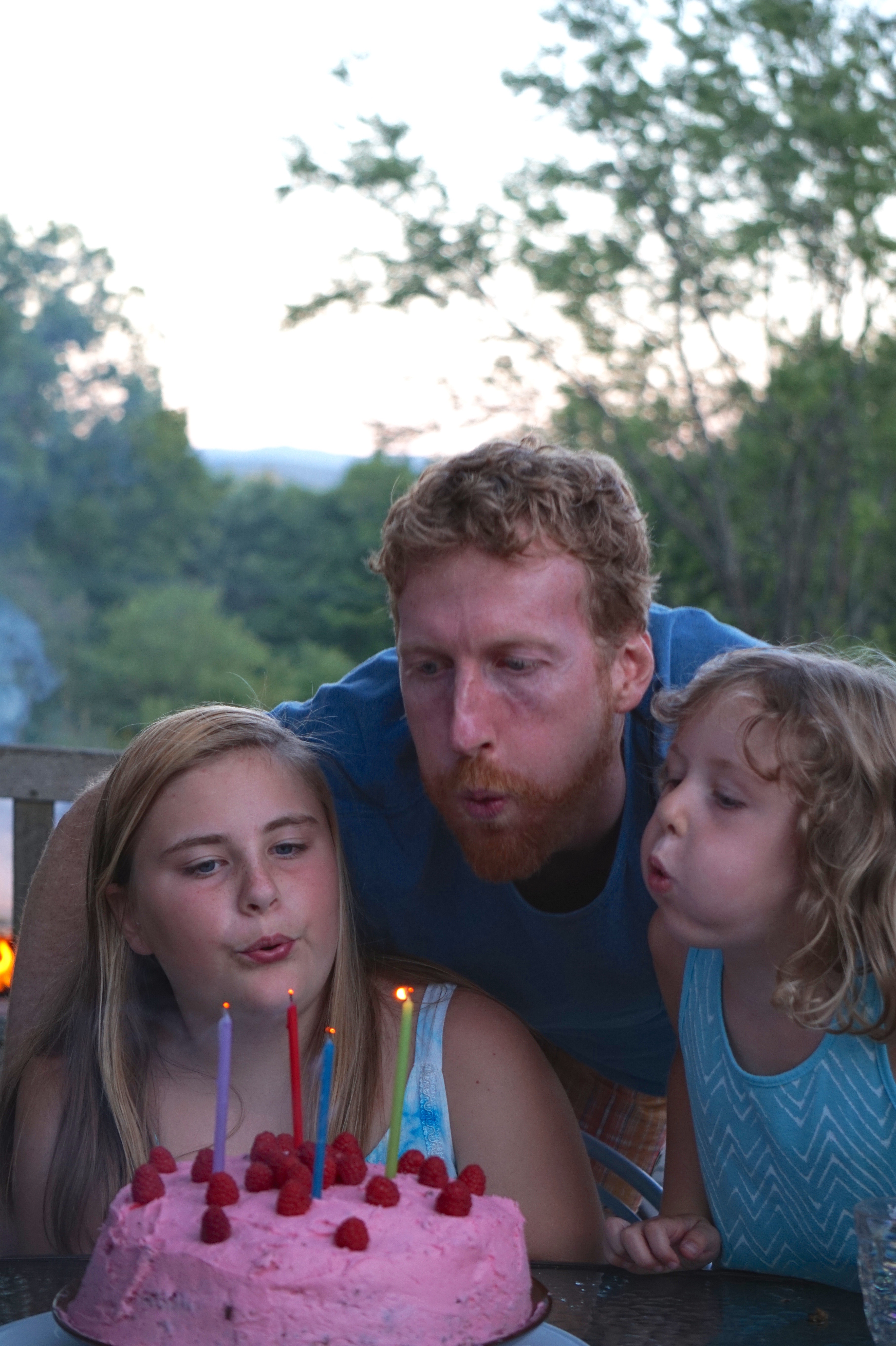 Happy Birthday! Homemade chocolate raspberry cake with raspberries from Darling’s farm. Next time I’ll eat two pieces. 🙂