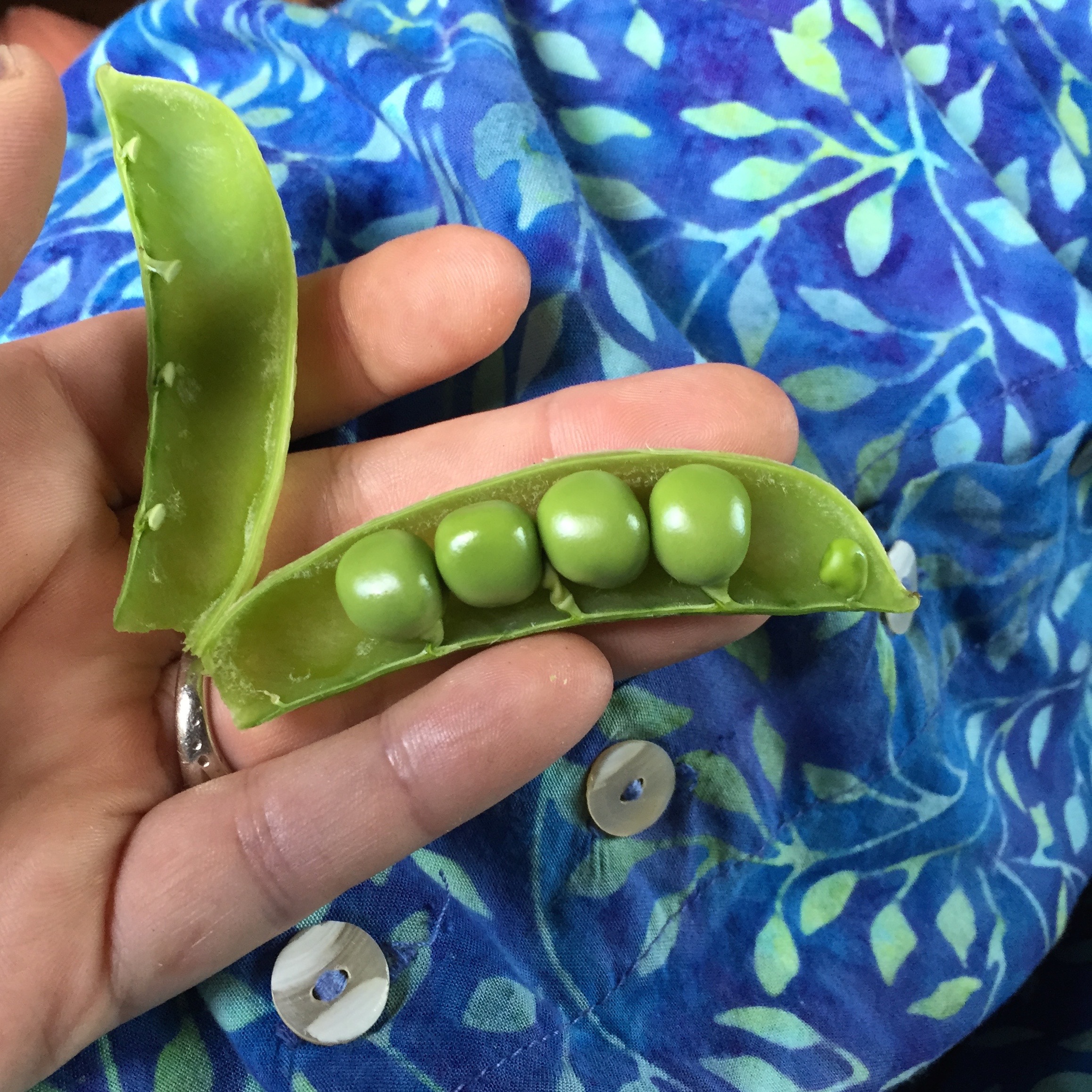 Peas bursting from their pods. So juicy and sweet.
